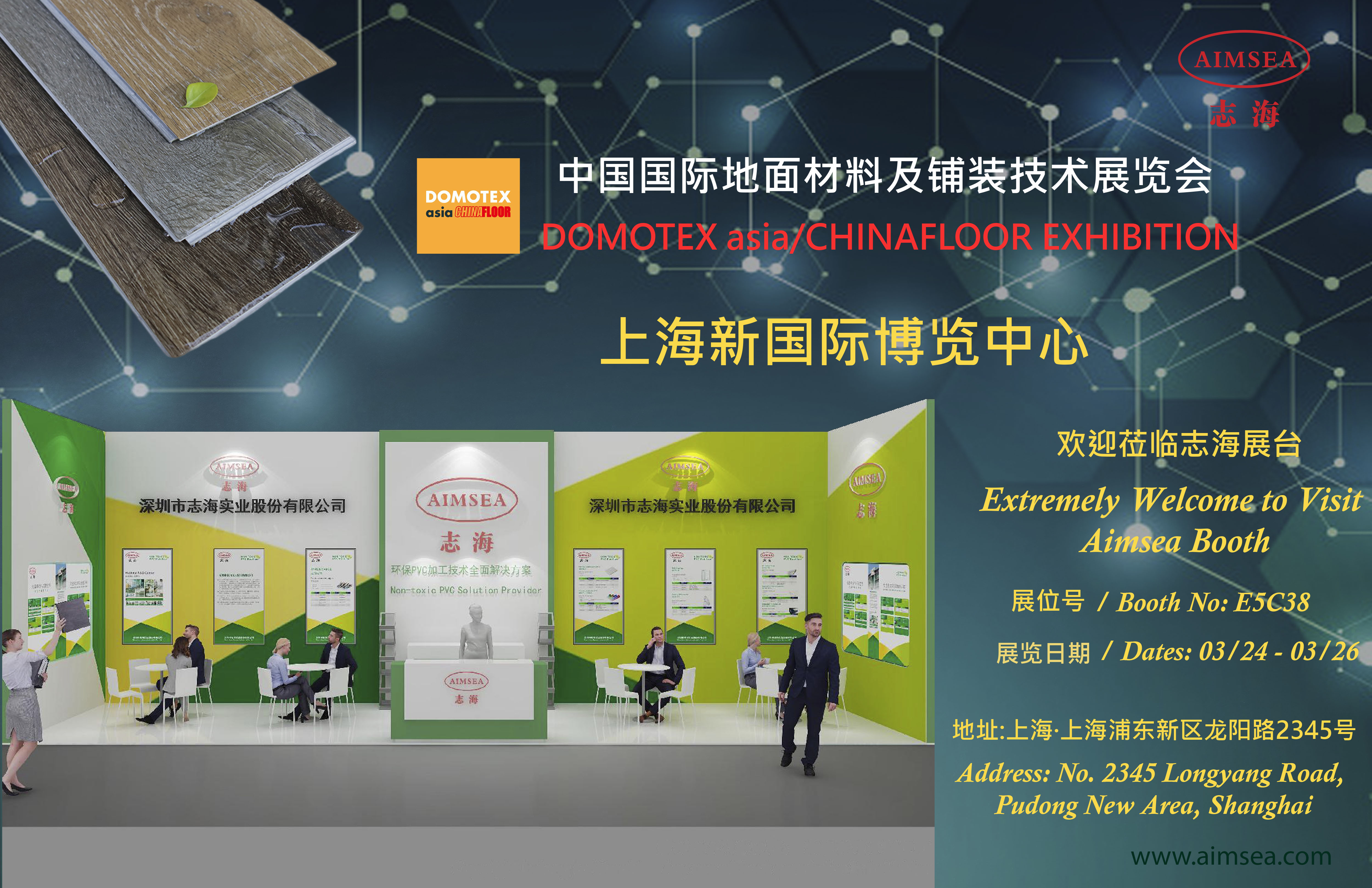 Aimsea Group, a national high-tech enterprise specializing in the research, production, and sales of non-toxic environmentally friendly PVC stabilizers & additives for SPC, WPC, LVT flooring. Combined with the development of the times, increases the strength of technological research and development. The Company has more than 50 advanced testing and R&D equipment. National industrial development laboratory and high quantity fully automated production plant. This exhibition will expose our new products, advantages, different product series, services and so on.