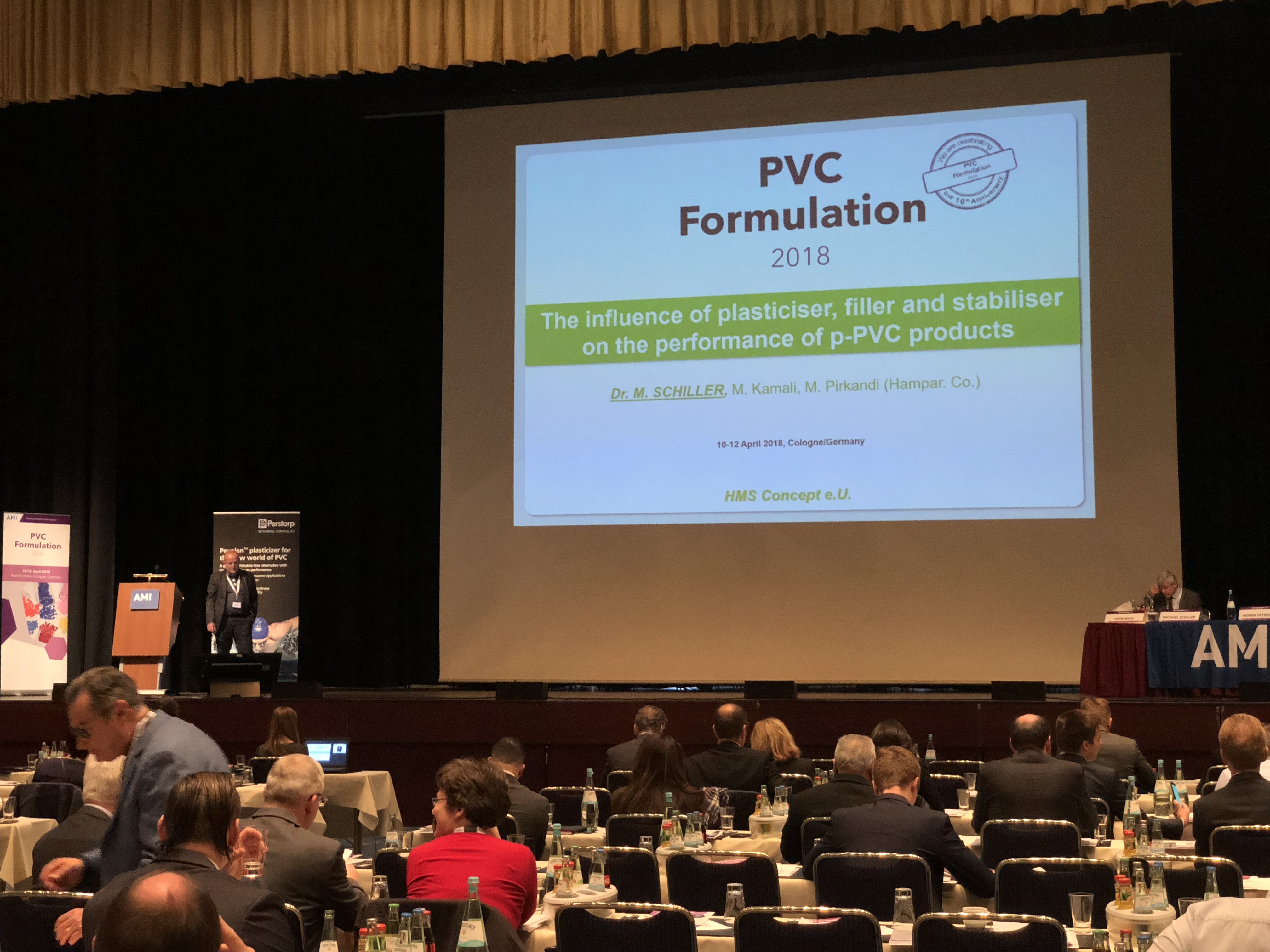 On April 10-12, 2018, the president of Aimsea, Yan Qing, led an external expert Dr. Michael Schiller to participate in the 2018 PVC Formulation Conference at the Maritim Hotel in Cologne, Germany. In the meeting, Dr. Michael's report was warmly welcomed by the audience.